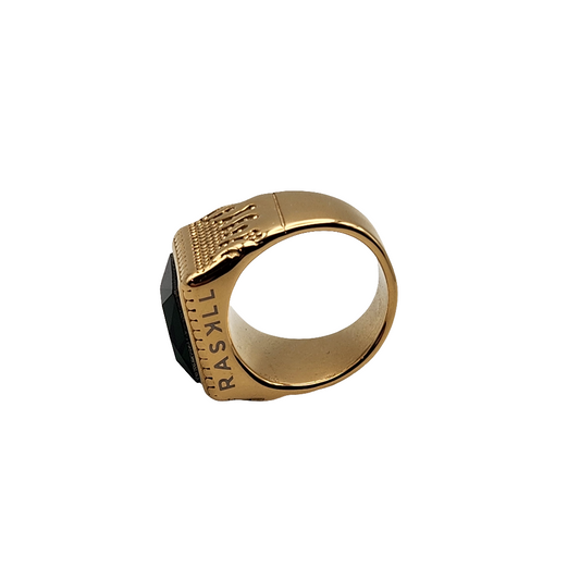 Flame ring, Stainless Steel (18kGold / Green stone)