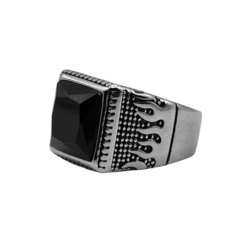 Flame ring, Stainless Steel (Silver / Black stone)